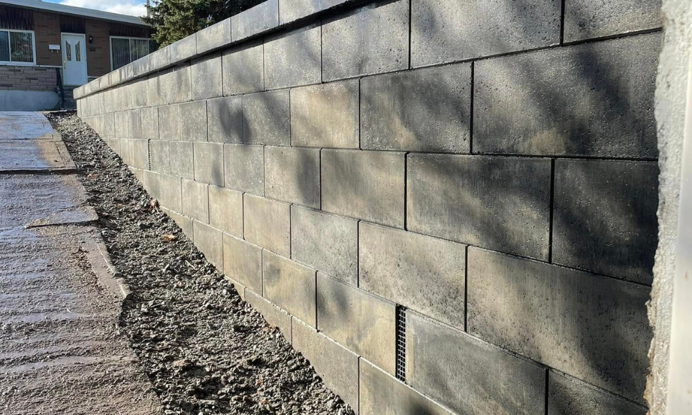 We don’t cut corners. Our retaining walls start with a solid, compacted base, include proper drainage gravel and tubing with well-placed exits, and are built using geotextile fabric to keep materials stable. We also reinforce with geogrid to ensure your wall stands strong for years to come.